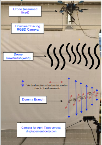 - Built a lab testbed emulating field conditions to capture RGB-D data from a downward-facing camera on a hovering drone, analyzing tree-branch oscillations induced by drone downwash.